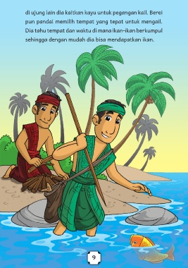 di ujung lain dia kaitkan kayu untuk pegangan kail. Berei pun pandai memilih tempat yang tepat untuk mengail. Dia tahu tempat dan waktu di mana ikan-ikan berkumpul sehingga dengan mudah dia bisa mendapatkan ikan. 9 9