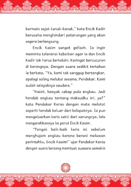 perintahku, Encik Kasim!” ujar Pendekar Keras