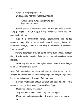 "Siap Pak Komandan!" jawab I Nyoman Tri tegas.