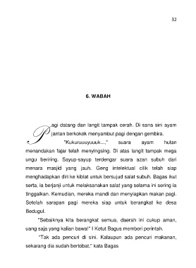 menghadapkan diri ke kiblat untuk bersujud salat subuh. Bagas ikut