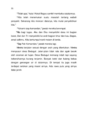 "Kita bagi tugas. Aku dan Eka menyelidiki desa ini bagian