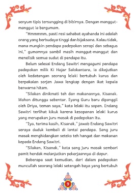 “Iya, terima kasih, Kisanak,” jawab Endang Sawitri