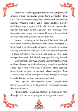 melapor kepada Ki Sela Gondhang, ayah Endang Sawitri.