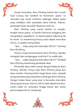 Sesaat kemudian, Baro Klinting berlari dari rumah