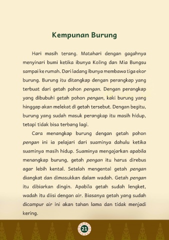 yang dibubuhi getah pohon pengan, kaki burung yang