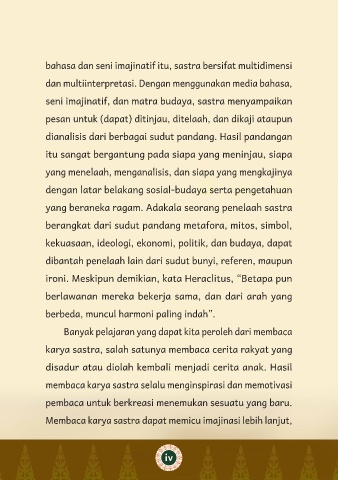 bahasa dan seni imajinatif itu, sastra bersifat multidimensi