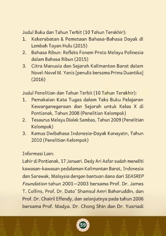 Lahir di Pontianak, 17 Januari. Dedy Ari Asfar sudah meneliti