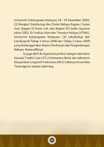 tahun 2003. Di Institut Alam dan Tamadun Melayu (ATMA),