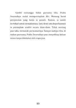malam purnama, Prabu Swarnalaya pun menyelinap keluar