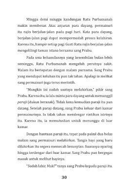datang. Setelah paraji datang, sang Prabu keluar dari kamar