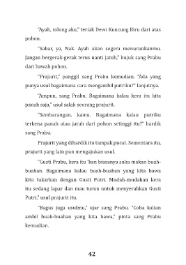 ambil buah-buahan yang kita bawa,” pinta sang Prabu