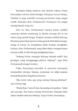 “Dinda Ratu,“ kata Prabu Swarnalaya kemudian, “tidak