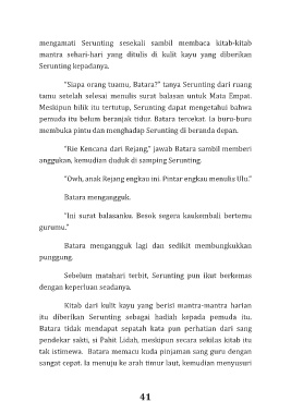 “Siapa orang tuamu, Batara?” tanya Serunting dari ruang