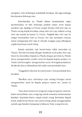 pasukan raja. Apalagi La Tinulu sangat disukai oleh istri raja. La