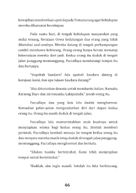 Karaeng Bayo dan ini temanku Lakipadada,” jawab orang itu.