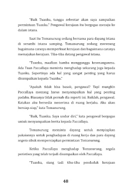 “Baik, Tuanku. Saya undur diri,” kata pengawal bergegas