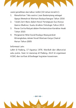 satu putra. Saat ini menetap di Padang. Aktif di organisasi