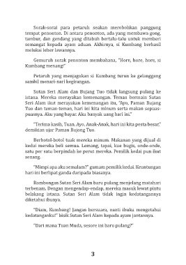 semangat kepada ayam aduan. Akhirnya, si Kumbang berhasil