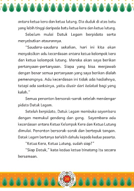 Datuk Legam bertanya terlebih dahulu kepada kedua peserta.