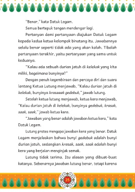 durian jatuh, sedangkan krasak, saak, saak adalah bunyi