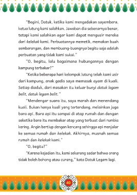 tidak boleh bohong atau curang,” kata Datuk Legam lagi.