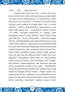 ubi atau sayuran dagangannya. Ia merasa haus, lelah,