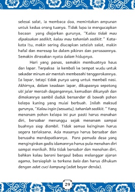 dan lapar. Terpaksa ia kembali ke tempat wudu untuk