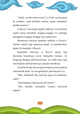 “Aduh, nenek minta maaf, Cu.Tadi nenek pergi
