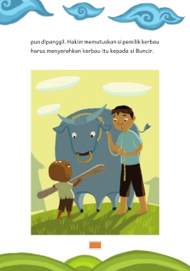 pun dipanggil. Hakim memutuskan si pemilik kerbau harus menyerahkan kerbau itu kepada si Buncir. 18