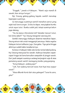 Nyi Iteung menyusul ke sawah. Kakinya berjalan cepat-