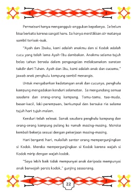 jawab anak penghulu kampung sambil menangis.