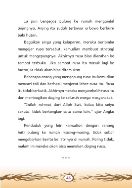 mencari tali dan berhasil menjerat leher rusa itu. Rusa