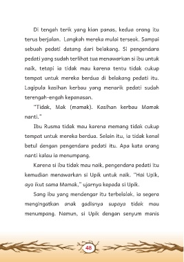 Karena si ibu tidak mau naik, pengendara pedati itu