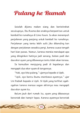 “Upik, ayo bantu ibumu membawa ayamnya,” ujar