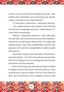 “Ya, aku paham, wahai Dewa,” jawab Ratu Masumai.