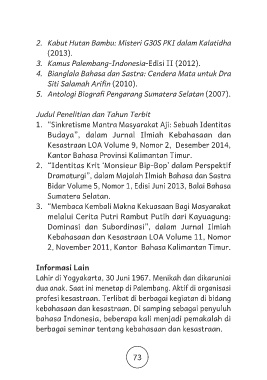 5. Antologi Biografi Pengarang Sumatera Selatan (2007).