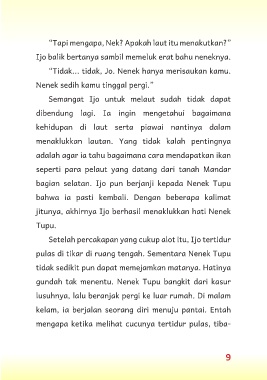 “Tapi mengapa, Nek? Apakah laut itu menakutkan?”
