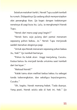 Sebelum matahari terbit, Nenek Tupu sudah kembali