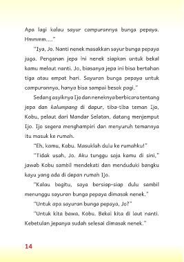 “Iya, Jo. Nanti nenek masakkan sayur bunga pepaya