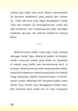 tetangga Nenek Tupu, datang ke pantai. Ia berjalan