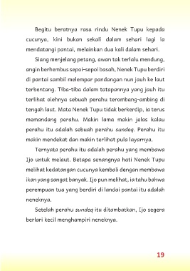 tengah laut. Mata Nenek Tupu tidak berkerdip, ia terus