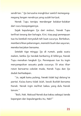 sendirian.” Ijo berusaha menghibur sambil memegang-