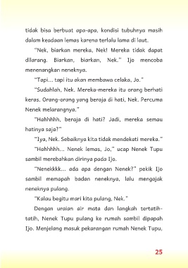 dilarang. Biarkan, biarkan, Nek.” Ijo mencoba