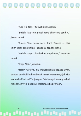 “Boleh, Nek, besok sore, ‘kan? Yeeeee ... bisa