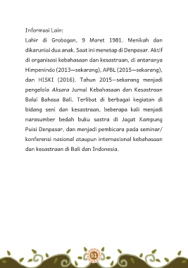 Lahir di Grobogan, 9 Maret 1981. Menikah dan