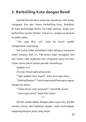mengajak Ara dan Hosen berkeliling kota. Matahari