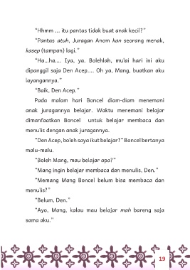 “Den Acep, boleh saya ikut belajar?” Boncel bertanya
