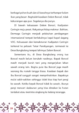 ke sawah. Ketika bapak Boncel tidak ke sawah, ibunya