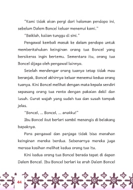 Dalem Boncel. Ibu Boncel berlari ke arah Dalem Boncel